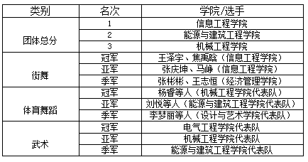 体育舞蹈项目的团体赛将本次演WU大赛的紧张气氛推向了顶点,由分别来自机械工程学院、能源与建筑工程学院、电气工程学院、设计与艺术学院、经济管理学院和信息工程学院的十支参赛队伍展开了激烈地角逐。
