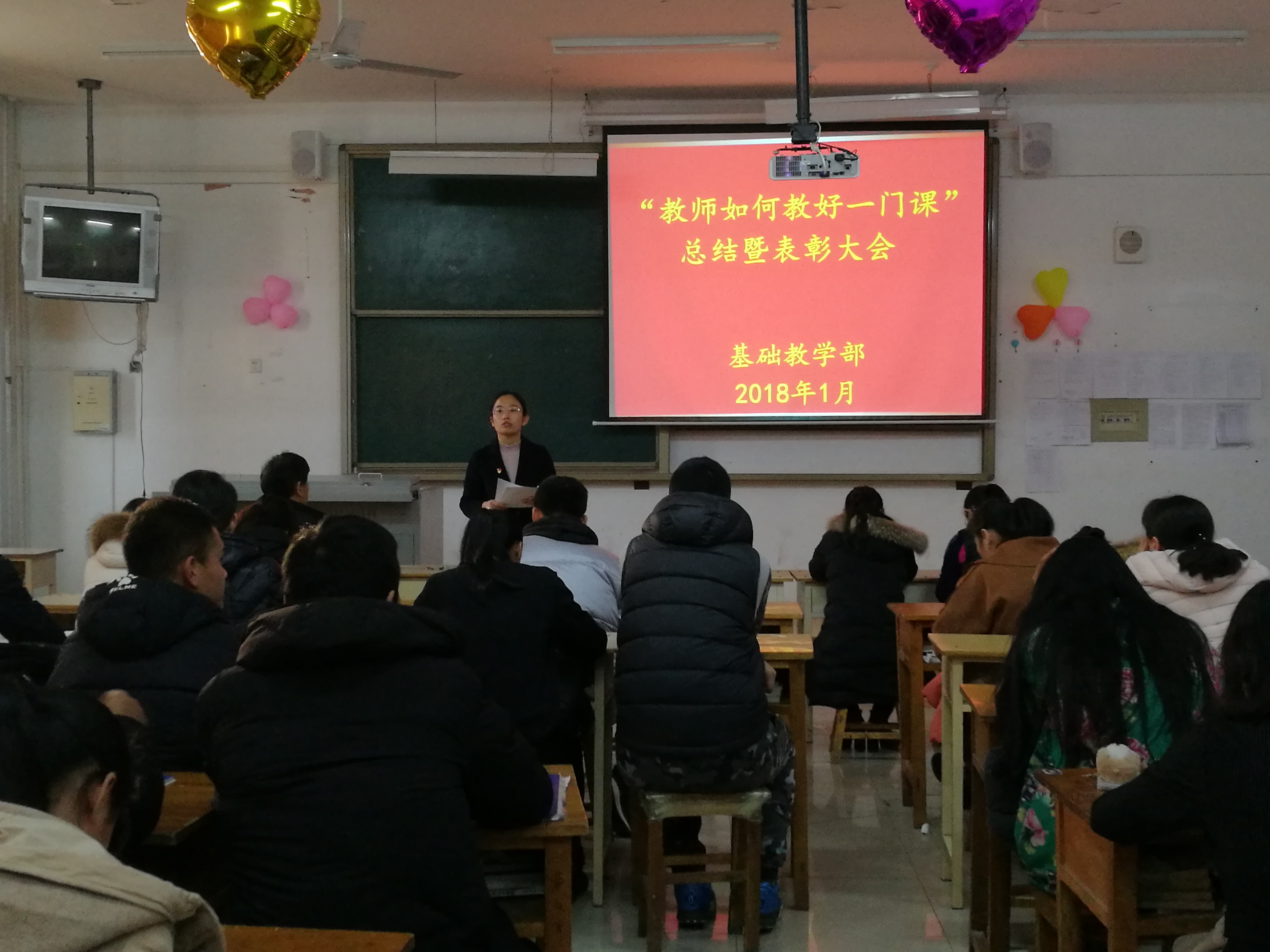 “不忘初心,砥砺前行”,2017年基础教学部全体教职工认真贯彻我校《“教师如何教好一门课”活动实施方案》要求,在一年的工作中,涌现出许多先进个人,为激励先进,不断提升我部教师业务素质和教育教学能力,1月8日下午4点,基础教学部在10号楼211召开“教师如何教好一门课”总结暨表彰大会。大会由基础教学部副主任李琦主持,基础教学部全体教师参加了此次会议。
