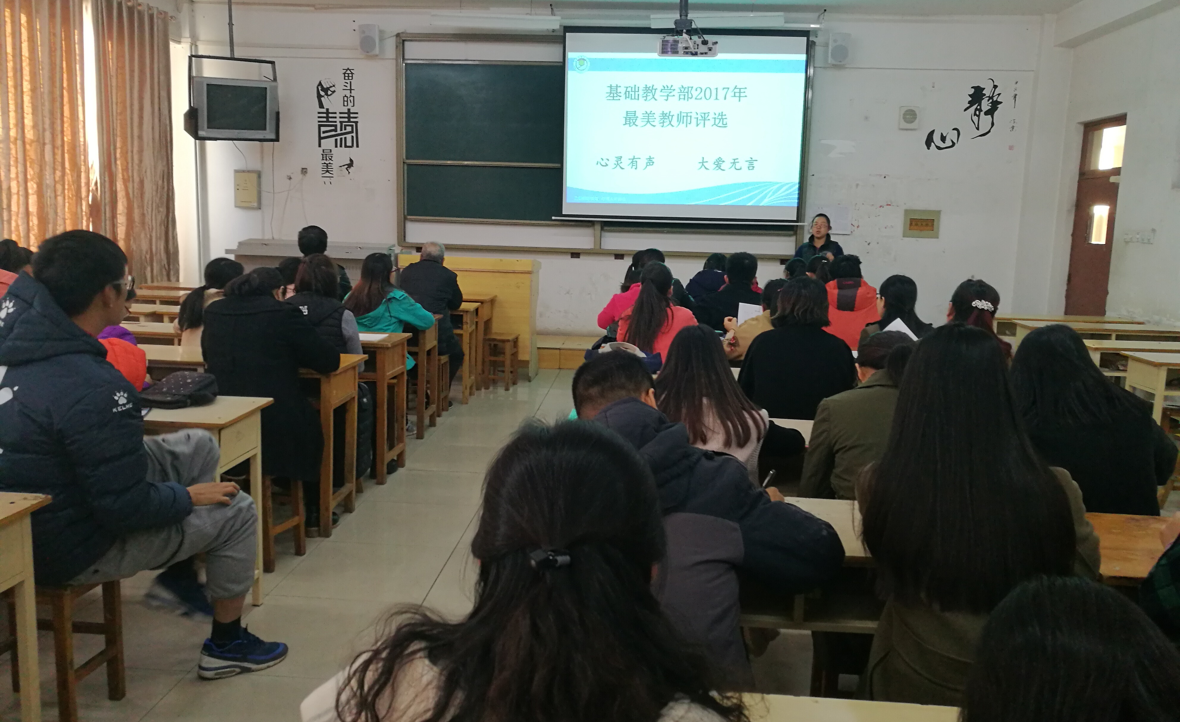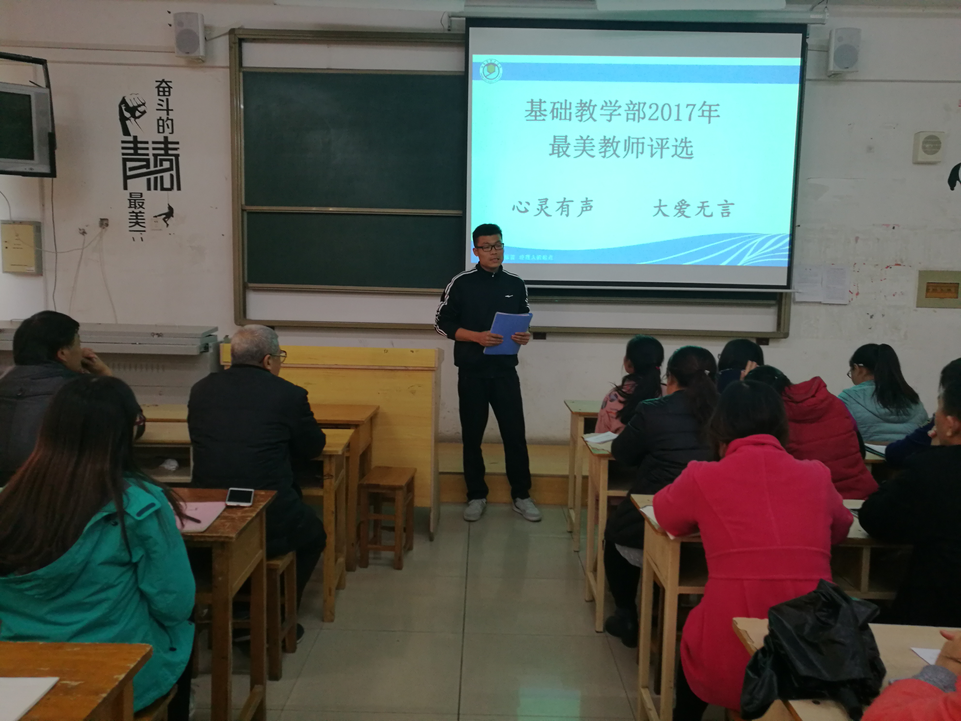 11月10日下午4时,基础教学部“心灵有声,大爱无言”2017年最美教师评选活动于10号楼213顺利举行,会议由基础教学部副主任李琦主持召开,基础教学部全体教职工参加了此次活动。经过教研室推荐和部门初选,数学教研室闫佩玉老师和体育教研室于寅生老师成为最终两名候选人。