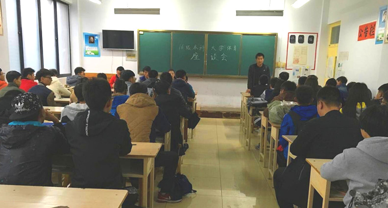 刘主任代表体育教学部表态,对同学们提出的问题,会尽快逐一进行落实,对于不能解决的问题将上报学校有关职能部门协调解决,并表示随着学校建设进程的加快,内涵建设的提升,学院场馆建设也将逐步完善。学校还将每年定期举办田径运动会、体育文化节及各类体育竞赛来丰富学生的课余文化生活,并号召同学们积极进行体育锻炼,坚持每天锻炼一小时,幸福生活每一天。