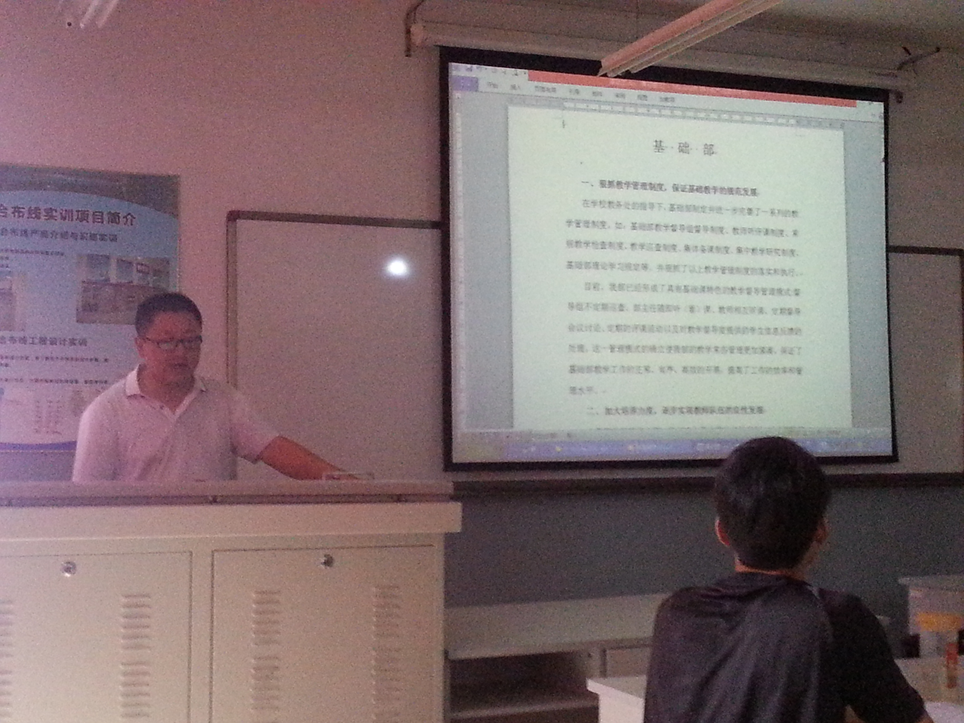 我部高度重视此次培训工作,各教研室分别制定出切实可行的培训计划,培训任务责任到人,确保培训质量。此次培训采取集中培训、分组培训和自学三种方式进行。集中培训时间为8月22日下午至8月24日。集中培训阶段分别由基础部主任雷海峰,基础部教学副主任李琦以讲座形式开展,分别就应用型本科教育的特征与特色、高职教育基础课程的定位、我院教学管理制度剖析、基础课教学过程详解、教学常规集中培训、基础课备课的过程及方法、基础课程教学方法的运用、基础课程教学手段的选择等进行了详细讲解。参加培训的新教师在培训过程中严格遵守培训纪律,虚心学习,认真做好学习笔记。