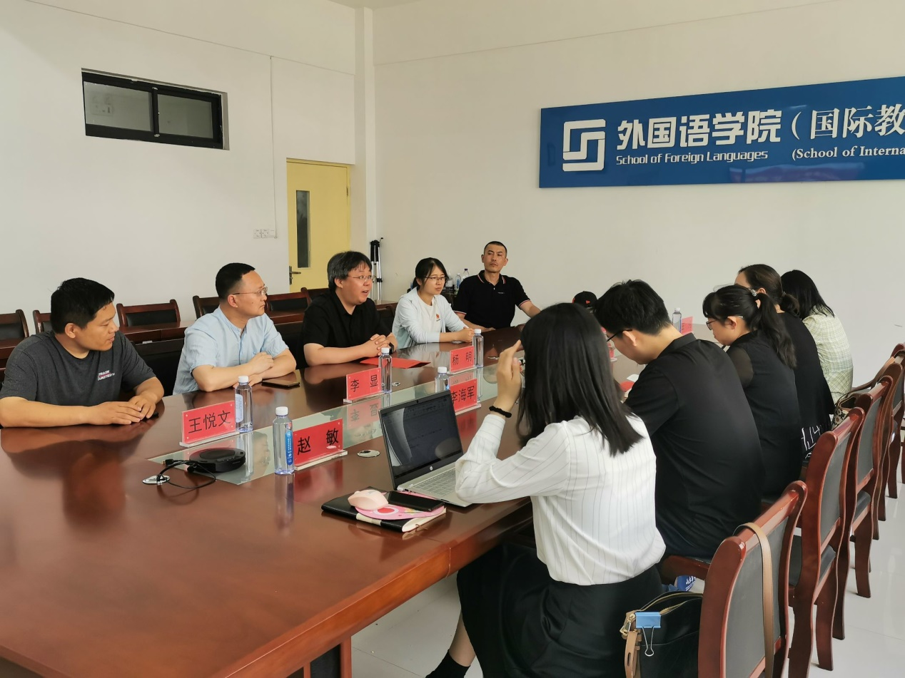 进一步深化大学英语教学改革,满足学生个性化需求,提高大学英语教学质量,基础教学部主任助理闫佩玉、外语教研室主任刘伟伟、语言实验中心主任李海军及各课程组长一行六人于6月9日赴齐鲁工业大学外国语学院(国际教育学院)开展大学英语教学改革调研学习。齐鲁工业大学外国语学院(国际教育学院)副院长杨明,公共外语教学部主任李显、语言综合实验教学中心副主任李灿灿、测试与题库建设中心副主任王悦文在文科楼213会议室与我校教师进行了座谈交流。
