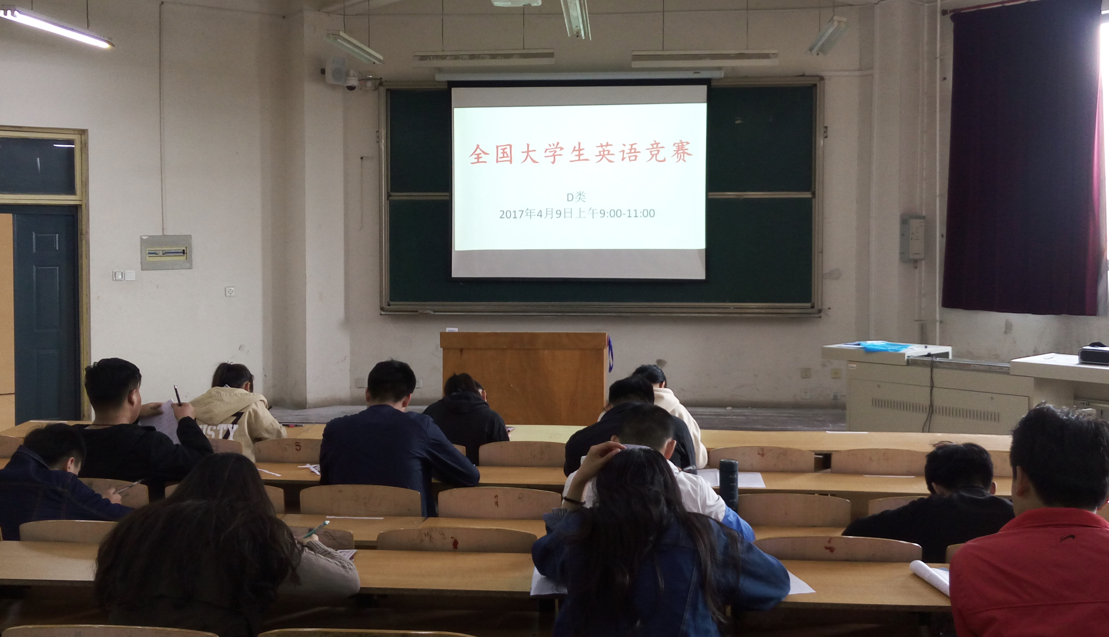 为贯彻教育部关于大学英语教学改革精神,展现我校大学生英语基础知识和基本技能,全面提高我校大学生英语综合运用能力,2017年4月9日,全国大学生英语竞赛(NECCS)初赛选拔考试在我校成功举办。我校共有421名学生报名参加了本次竞赛。