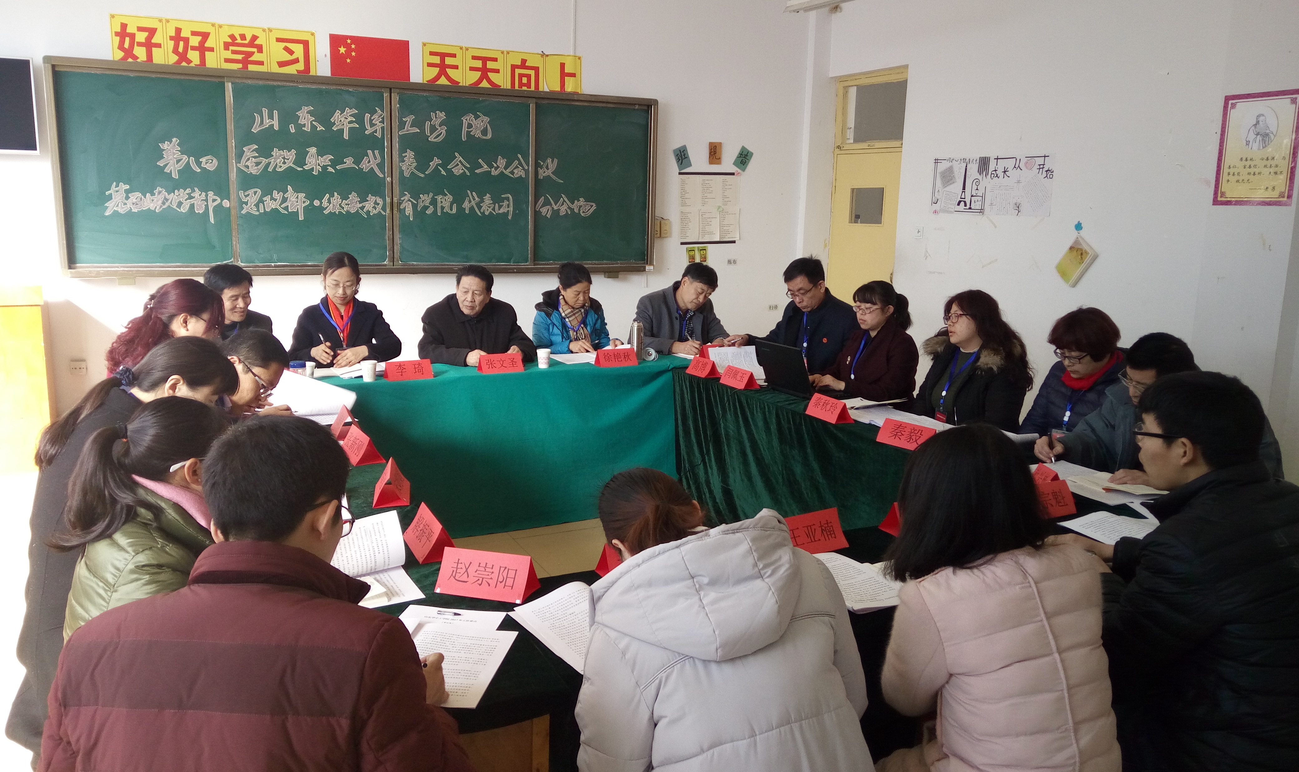 2017年2月25日,继永利集团第四届教职工代表大会开幕式之后,基础部工会分会在3号楼101顺利召开。此次分会由张文圣院长莅临指导、基础部工会全体教师代表参加了会议。大会主要议题是结合本职工作对梁校长的工作报告谈谈自己的体会,会议由基础部工会主席李琦主持。