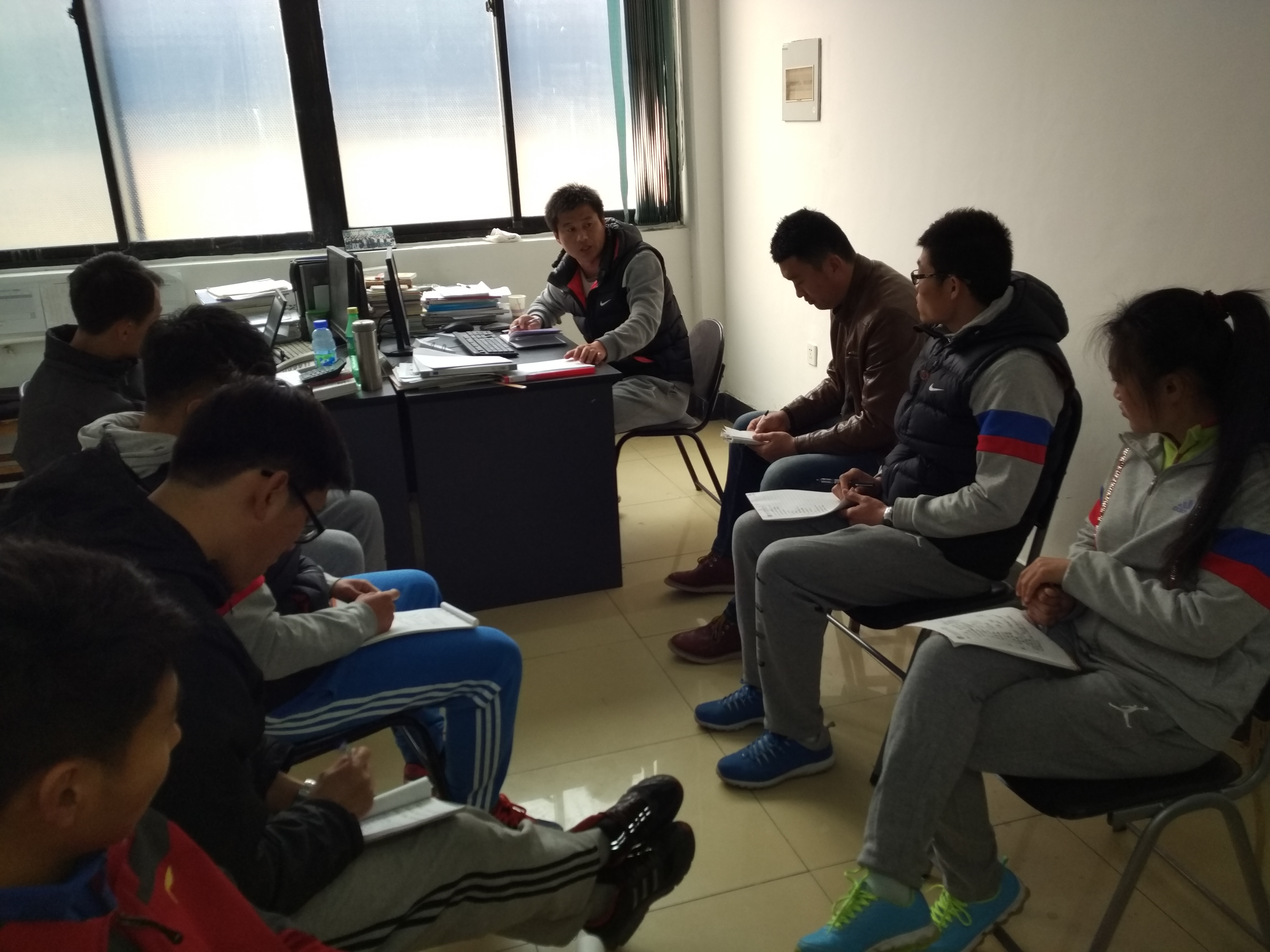 会上体育教研室主任杜兴彬首先强调好的开始对于以后工作的重要意义,着重指出了对新学期开学第一周工作中存在的问题,并对接下来教研室的工作进行了安排。第一,新学期开始教师们的工作积极性和工作热情有待提高,课堂管理有待加强,场地器材的管理要更加科学实效;第二,体育教研室要把教研活动、理论学习、技能学习扎实有效地开展起来,认真做好接下来的科研课题申报工作,各训练队的训练工作要稳步推进,各教师做好系部的听课准备。