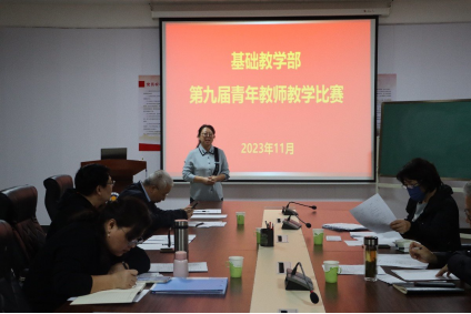 为进一步提升青年教师的教学水平,激发教学热情和活力,根据《基础教学部第九届青年教师教学比赛实施方案》,基础教学部于10.25-10.31日在各教研室内进行初赛选拔,于11月3日在10号楼二楼党员活动室举办了基础教学部2023年青年教师教学比赛决赛。此次决赛由基础教学部副主任闫佩玉主持,陈献跃等五名教授担任评委,各教研室内部选拔出的11名教师参加,部分无课教师进行观摩。